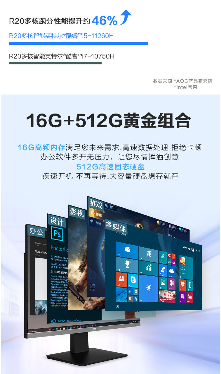 AOC AIO大师926 27英寸高清办公台式一体机电脑(11代i5-11260H 16G 512G 双频WiFi 3年上门 商务键鼠)黑