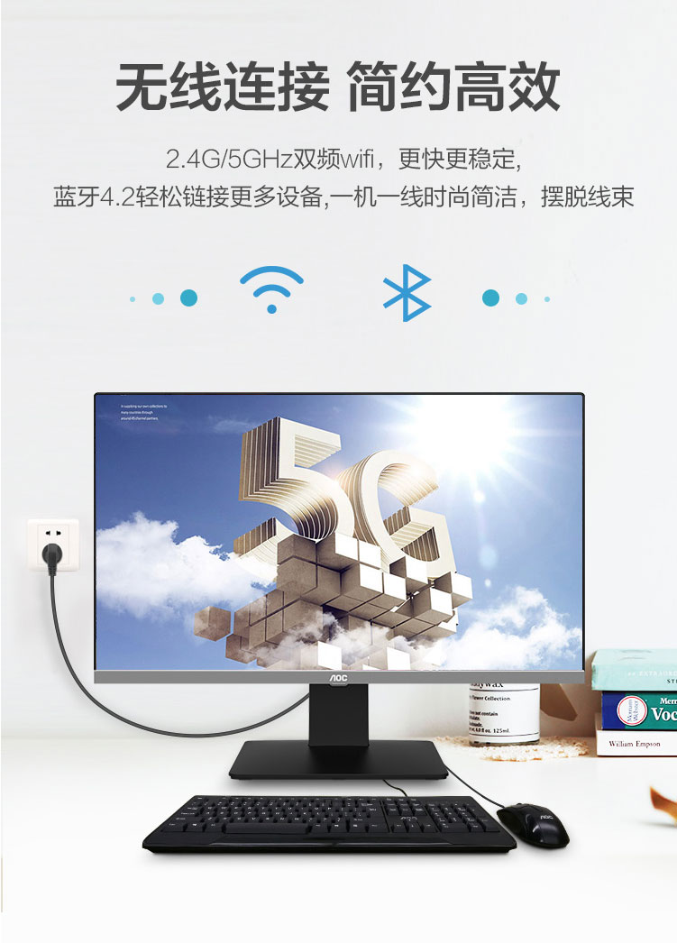 AOC AIO大师926 27英寸高清办公台式一体机电脑(11代i5-11400H 16G 512G 双频WiFi 3年上门 商务键鼠)黑
