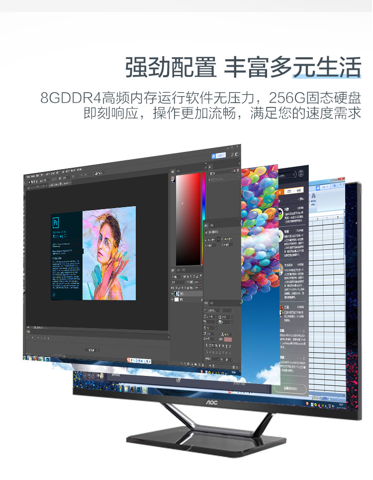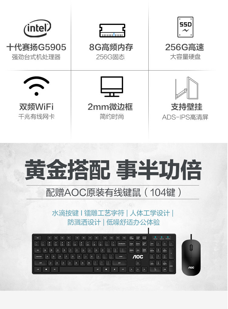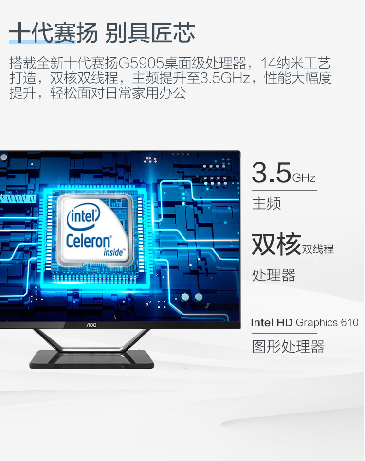 AOC AIO大师926Pro 21.5英寸高清办公台式一体机电脑(十代IntelG5905 8G 256GSSD 双频WiFi 3年上门 送键鼠)